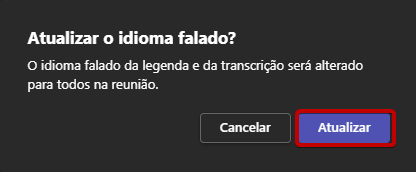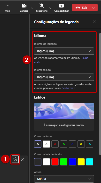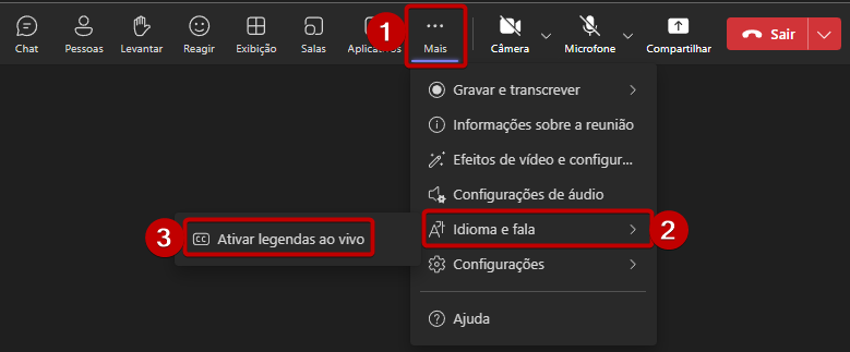 Isso ativará a legenda automática do Teams, em tempo real, para acompanhar o que é falado pela legenda escrita na tela.