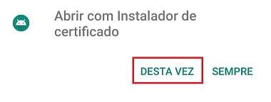 3 – Na caixa de diálogo, escolha a opção “Abrir com instalador de certificado”;