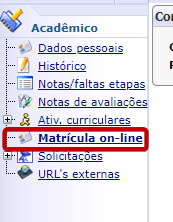 Na aba Acadêmico, clique em Matrícula on-line.