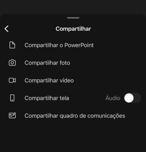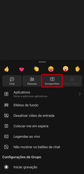 No botão Compartilhar, se for o caso, você poderá compartilhar a tela do computador: