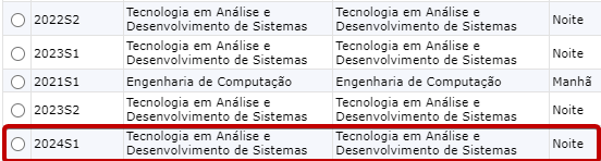 Caso alguma matéria não apareça no horário, verifique no Portal Acadêmico se ele está Regular e com o periodo letivo no semestre atual.
