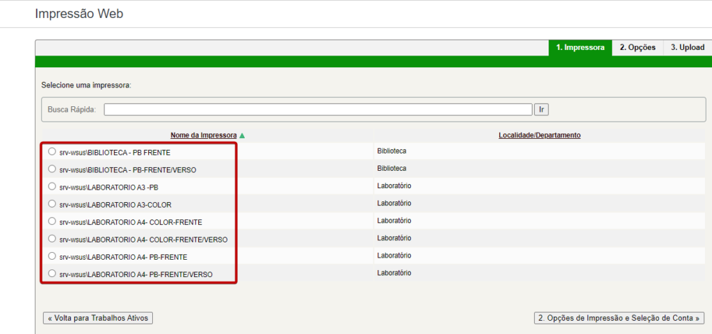 Laboratório: Impressoras localizadas no Lab. Informática (Prédio A)